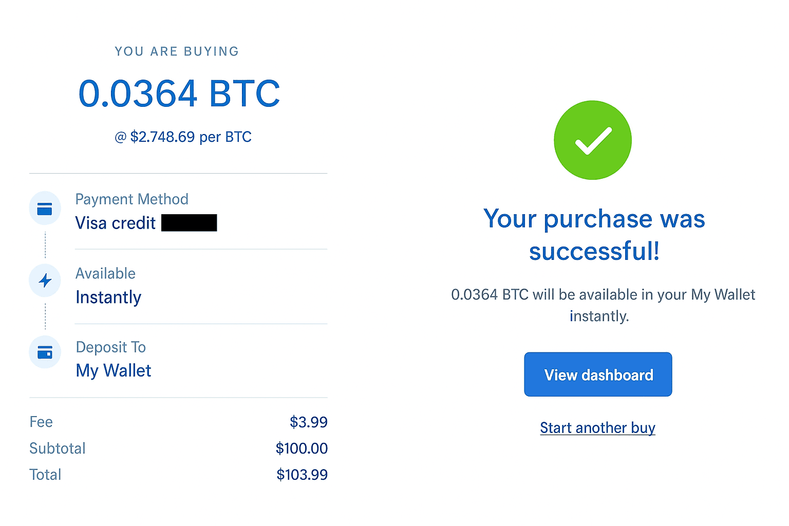 | Coinbase | Credit/debit card purchase (United States) | 3.99% | Higher pricing reflects streamlined buying with cards |