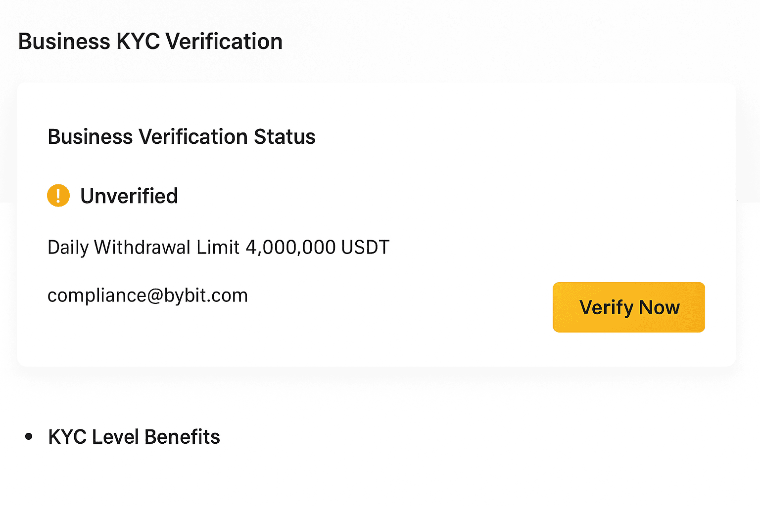 All entity submissions must go through Bybit’s business verification portal; email applications are not processed.