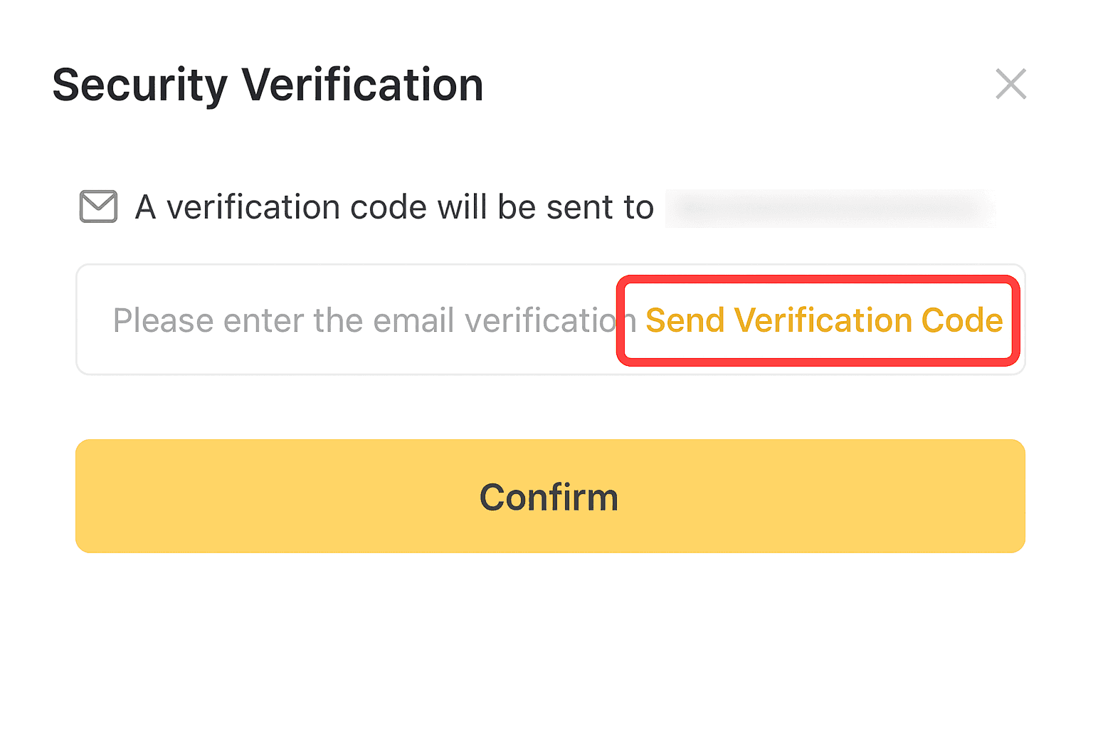 Step 4: A pop-up will prompt you to send a verification code. Enter your email and choose [Confirm].