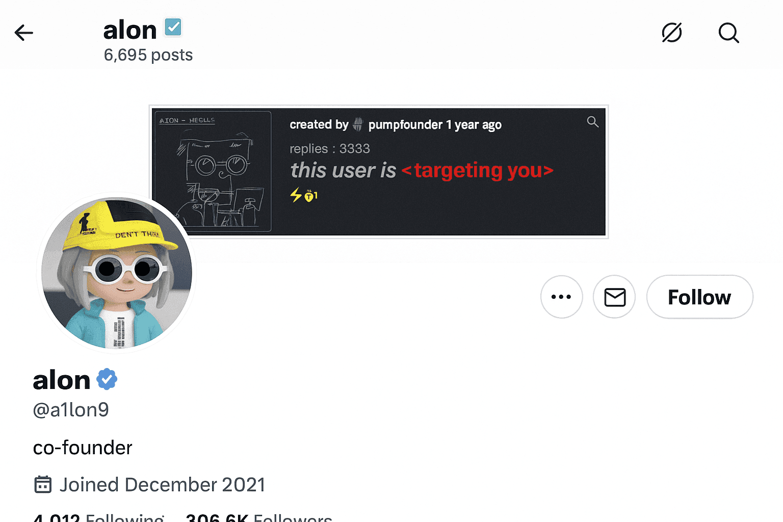 Alon, the creator of , remains one of the most divisive builder accounts on Twitter. His presence reflects the speculative and often chaotic side of crypto culture, where meme coin launches can spread with extraordinary speed.