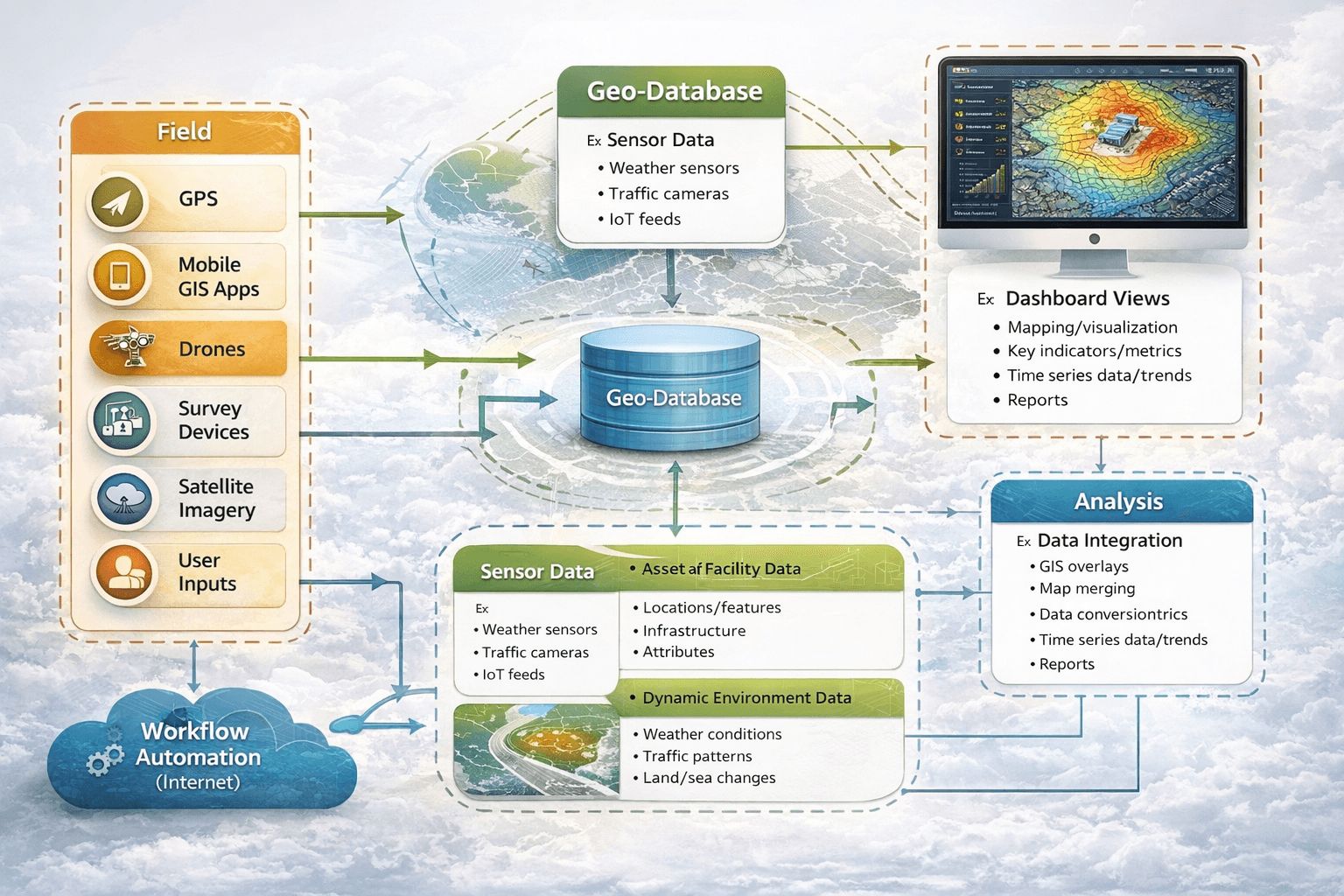 Spatial dashboards provide a common operational picture. Managers can monitor asset status, predict compactor fill cycles, optimize collection schedules, and allocate resources more effectively.